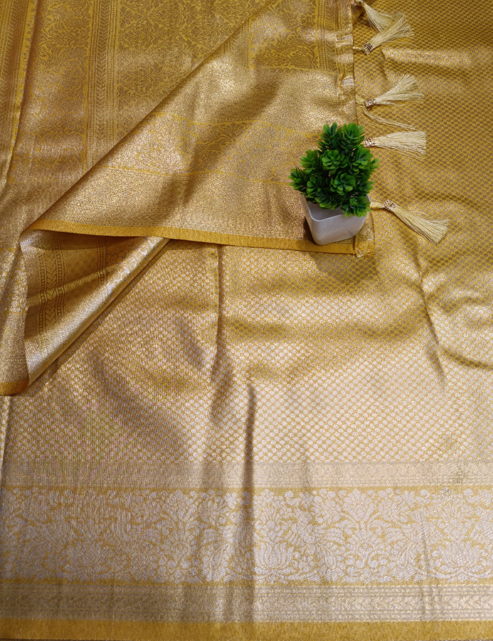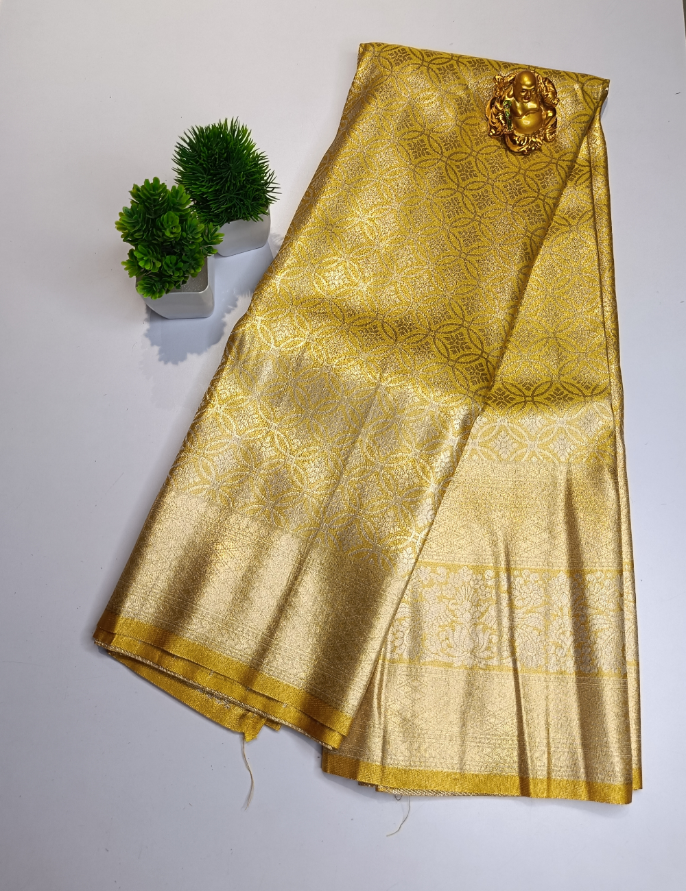 Golden Yellow Soft Silk Saree with Border & Blouse